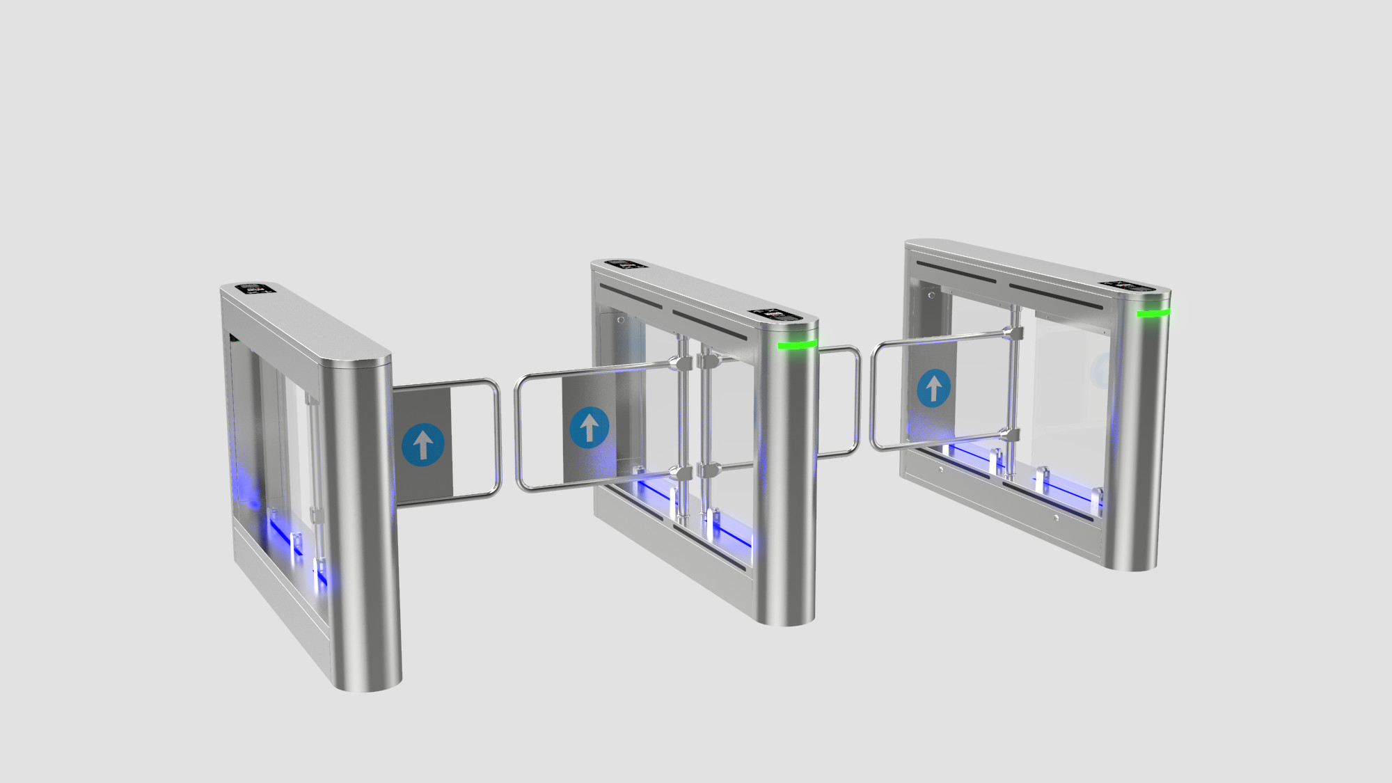 ประตูหมุนจดจำใบหน้าความสูงเอวพร้อมแขนสวิงกันน้ำและเทคโนโลยีมอเตอร์แบบไม่มีแปรงถ่าน